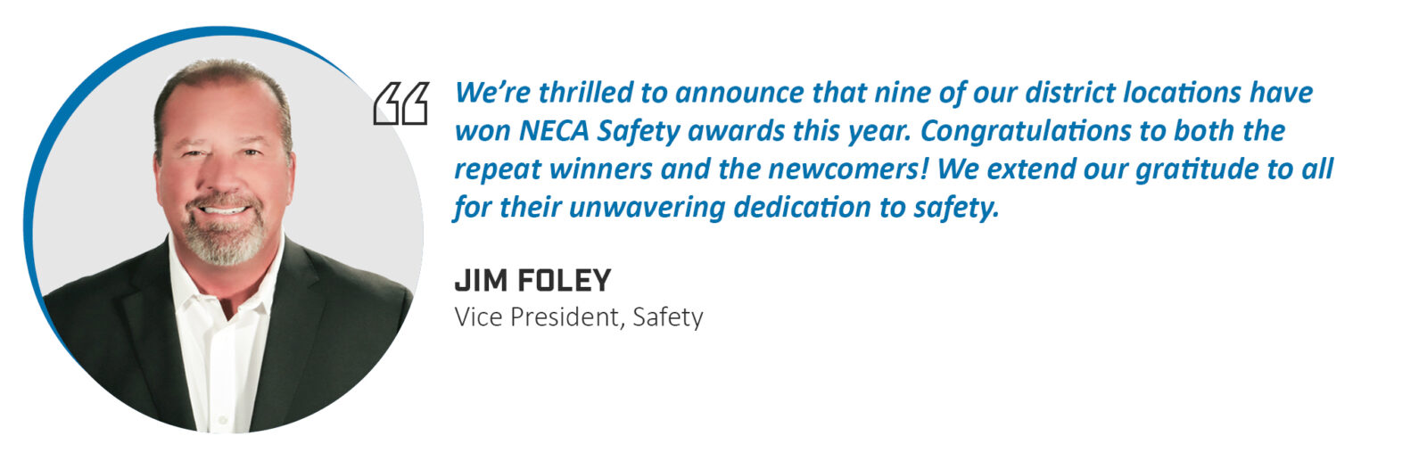 NECA announced its premier recognition program on April 15, acknowledging contractors’ exemplary safety performance. Across these five MYR Group subsidiaries, nine districts attained Safety Excellence awards, while two districts won Zero Injury recognition for their performance in 2023.