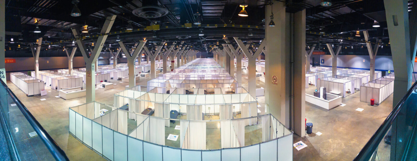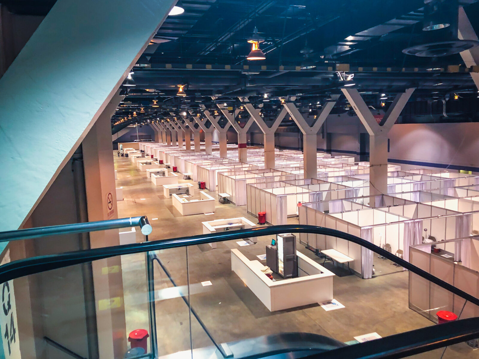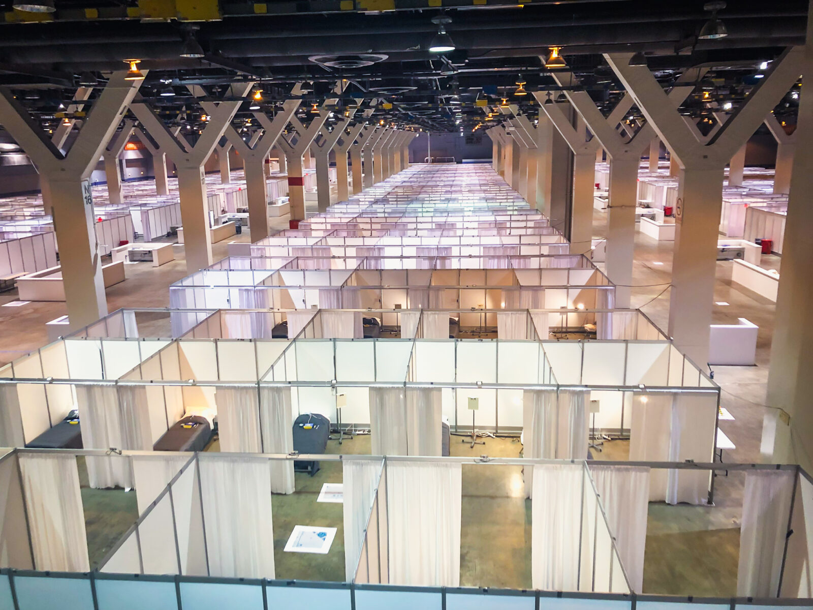 Designed to serve coronavirus patients, this unprecedented facility spanned three of the convention center’s halls, allowing patients to be separated by the level of care required. Up to 3,000 low- to moderate-acuity patients could be treated.