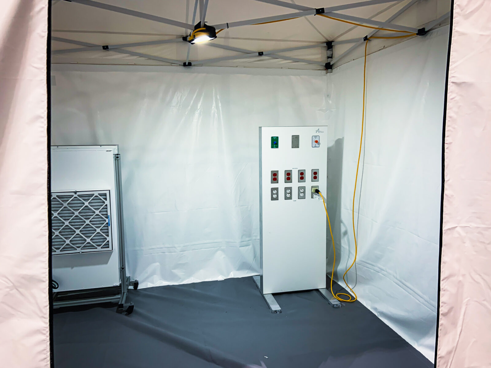 Huen Electric completed the electrical construction for this de facto field hospital on an expedited timeframe – 26 days, start to finish — during the first waves of the COVID-19 pandemic. In each patient tent, our crews connected power for a mobile headwall and ventilator, interior task lighting, and nurse call buttons for each bed.
