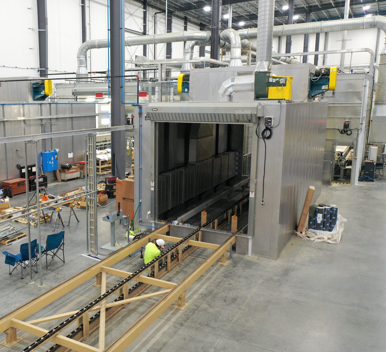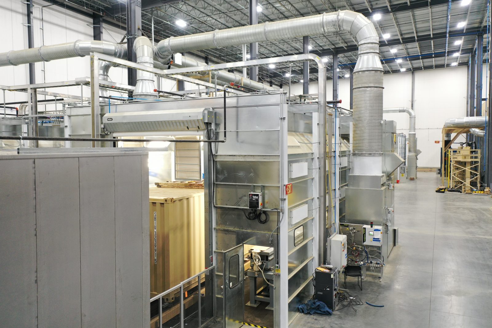 The plant fit out also included power and control wiring for equipment such as a regenerative thermal oxidizer, structural crane runways, 350HP compressors, blast booths, robotic welding stations, hand welding stations, paint booths, assembly stations, new high bay lighting, fire alarm and miscellaneous general power throughout the facility.